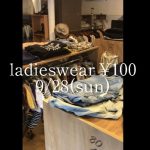 棚の上のレディース服がすべて100円です! ぜひ、掘り出し物を探しにいらして下さい!